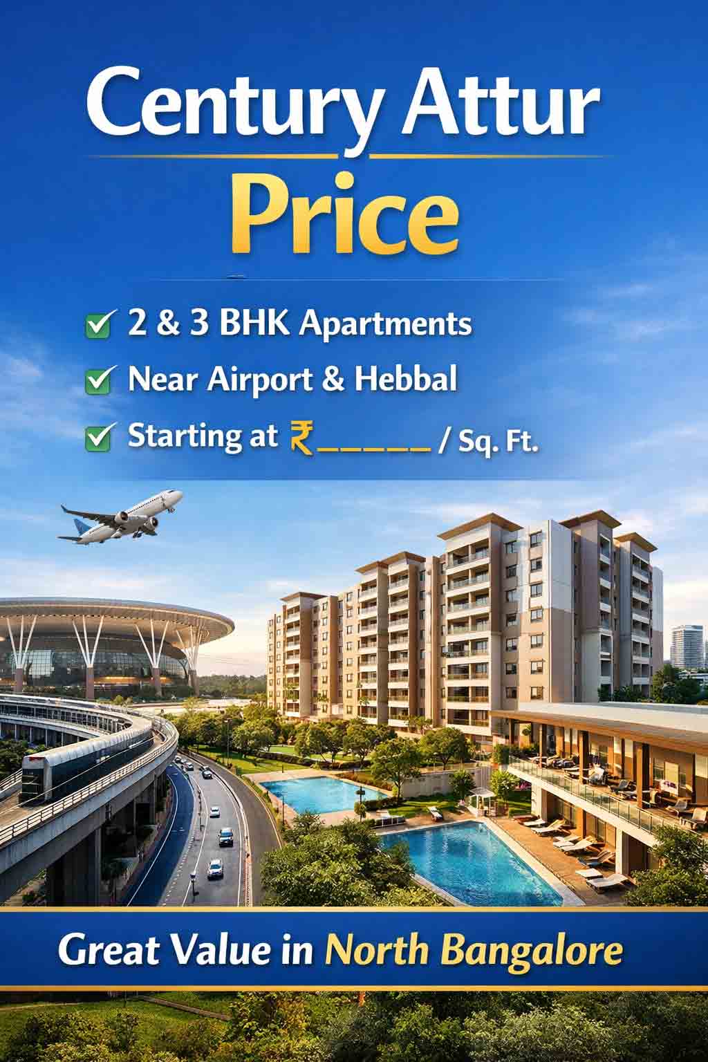 Century Attur is located in Yelahanka, one of the fastest-developing residential zones in Bengaluru. This location plays a major role in its pricing potential.